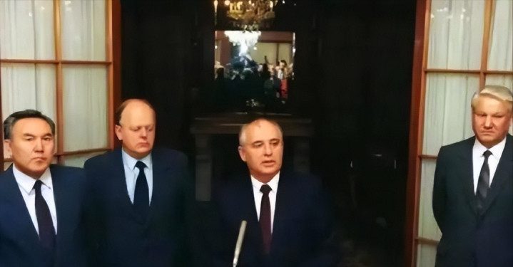 1991年8月政变时,他被软禁,叶利钦站出来反对政变,成了英雄。政变失败后,叶利钦直接禁止苏共活动,推动俄罗斯主权独立。戈尔巴乔夫辞职那天,苏联国旗降下,叶利钦接管权力。